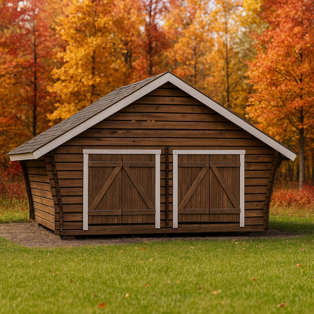 RAKOSEINÄ malli sopii parhaiten vetoa vaativiin varastotiloihin, kuten halkovarastoihin. Näissä malleissa on vinot sivuseinät.